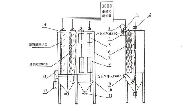 GA系列大气清灰袋式除尘器的特点:清灰系统采用了高频振动加反吹风,反吹风由特殊设计的电动机带动三通阀来实现,电动缸的动作由一套自控系统来控制,于过去采用的脉冲反吹和高压反吹布袋除尘器相比,除大大节省的配套辅助设备的投资以外,还非常显著的降低了电能消耗和设备的运行费用,同时还具有性能稳定可靠、除尘效率高、检修方便、滤袋寿命长等优点。本除尘器广泛用于建材、陶瓷、冶金、粮食、化工、铸造、轻工等行业。GA系列大气反吹袋式除尘器的规格及技术性能。