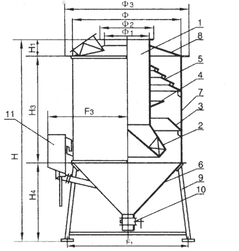 | 型号 | 烟气量m3/h | 除尘效率% | 烟气排放浓度 (mg/Nm3) |