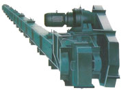 在封闭的机壳内借运动着的链条刮板与煤的摩擦将煤连续输出链条刮板在运行时埋于被输送的煤中固接在牵引链上的刮板在封闭的料槽中输送散状物料的输送机。这种输送机的牵引链和刮板都埋入物料中,刮板只占料槽的一部分断面,物料占料槽的大部分断面。它能水平、倾斜或垂直输送物料。水平输送时,所用刮板为平条形,利用埋入散料的链条和刮板对散料层的切割力大于槽壁对散料阻力的原理,使散料随刮板一起向前移动,此时移动的料层高度与槽宽之比在一定的比值范围之内,物料流是稳定的。需要进行垂直输送的埋刮板输送机